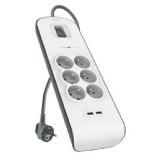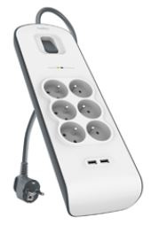 Vlastnosti produktu: * 6 zásuvek s přepěťovou ochranou + 2 univerzální porty USB 2.4A (sdílené) * USB porty pro ideální nabíjení vašeho tabletu a smartphonu v té nejvyšší rychlosti * Ochrana proti přepětí 650 J * Pro ochranu vašich domácích elektrických spotřebičů jako jsou DVD přehrávače, herní konzole, repro soustavy a jiné středně velké zařízení * 2-pólový přepínač * Délka kabelu 2 metry * Plně certifikovaný pro region EMEA * Retail balení