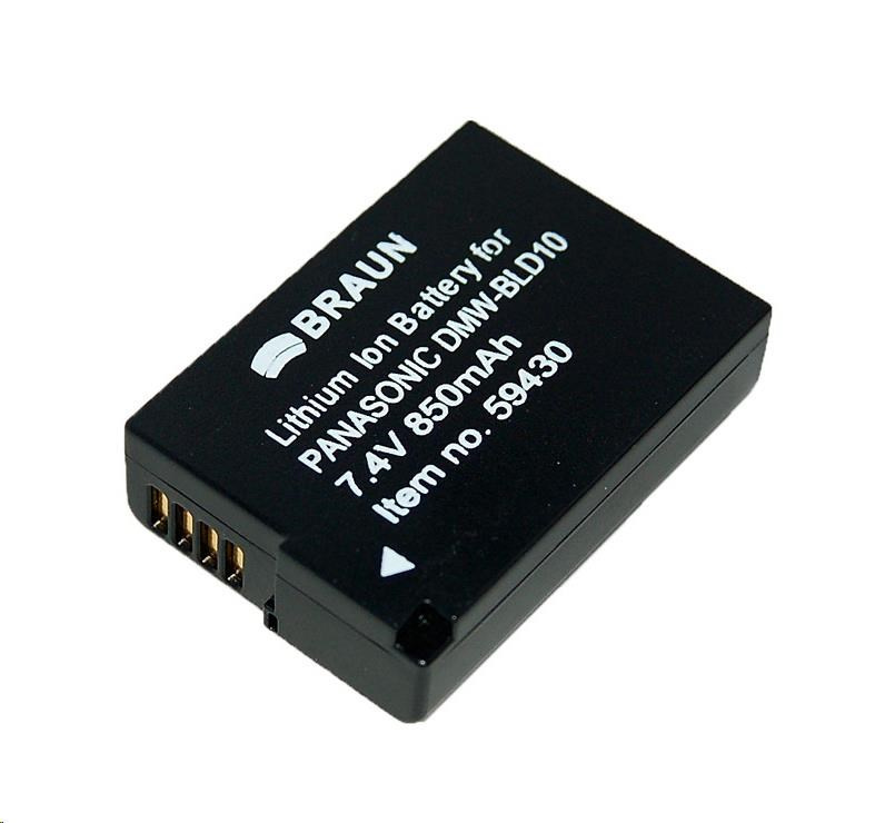 Li-ion akumulátor Braun BDP-PLD10 (D134, Panasonic BLD10 - 7,4 V/850 mAh) pre digitálne fotoaparáty PANASONIC Lumix G3, GF2, GX1. Tento akumulátor je dodávaný čiastočne nabitý. Pred použitím je vhodné akumulátor nabiť. Plnú kapacitu akumulátora môže dosiahnuť až po cca 4-5 nabíjacích cykloch.