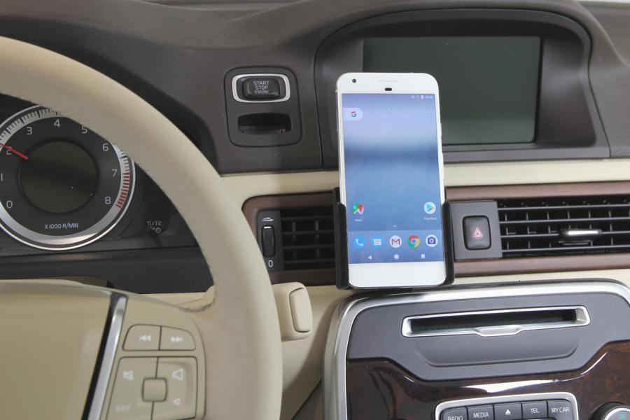 Držák na mobilní telefon Google Pixel XL bez nabíjení, je určen pro telefon bez pouzdra a je pokryt sametem, aby nedošlo k poškození povrchu vašeho telefonu. Držák je velmi pevný, telefon se v něm neklepe a nevibruje. Držák má kloub, díky kterému může být mobilní telefon kdykoliv jednoduše natočen na šířku nebo na výšku nebo naklopen. Držák se upevňuje na Brodit ProClip.