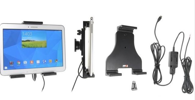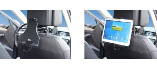 Nastavitelný držák na tablet je určen pro tablet v pouzdru i bez pouzdra a má nabíjení skryté v palubní desce. Držák je velmi pevný, tablet se v něm neklepe a nevibruje. Držák má kloub, díky kterému může být tablet kdykoliv jednoduše natočen na šířku nebo na výšku nebo naklopen. Držák se upevňuje na Brodit konzoli na hlavovou opěrku.