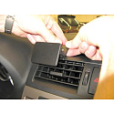 Co je Brodit ProClip: Montážní konzole Brodit ProClip je přesná upevňovací základna vyrobená na míru palubní desky vybraného vozu, důmyslně navržená tak, aby šla zacvaknout do spár palubní desky auta. Na klip se pak jednoduše namontuje držák mobilního telefonu nebo tabletu, MP3, hands-free sady, DVD atd. Brodit ProClip je vyráběn z pevné umělé hmoty (ABS plastu) ve Švédsku. Je konstruován tak, aby spolehlivě a velmi pevně držel ve spáře mezi plasty palubní desky. Klip je vždy navržen pro konkrétní model vozu. Díky tomu jej lze zacvaknout jednoduše na bezpečné místo a současně tak, aby nebránil řidiči ve výhledu přes přední sklo. To vše bez poškození interiéru auta (palubní desky) vrtáním.