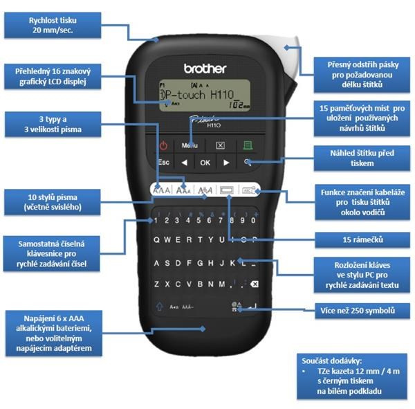 Tlačiareň štítkov BROTHER PT-H110 - 12 mm, TZe pásky - marker