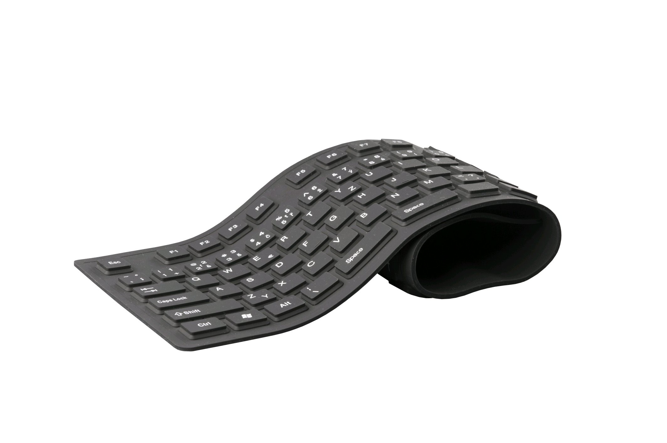 Popis produktu: Ohebná antibakteriální, prachuvzdorná a voděvzdorná klávesnice se skvělým využitím v lékařství, potrávinářství nebo průmyslu. Klávesnice má standardná český layout o 109 kláves s velkým enterem a numerickou částí. Vlastnosti - 109 kláves - voděodolná, prachuodolná - kompaktní velikost při sbalení, vhodné pro cestování - neslyšné psaní - USB - Rozměr: 495 x 138 x 12 mm - Váha: 0,3 kg - Délka kabelu: 1,5 m
