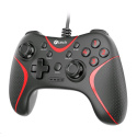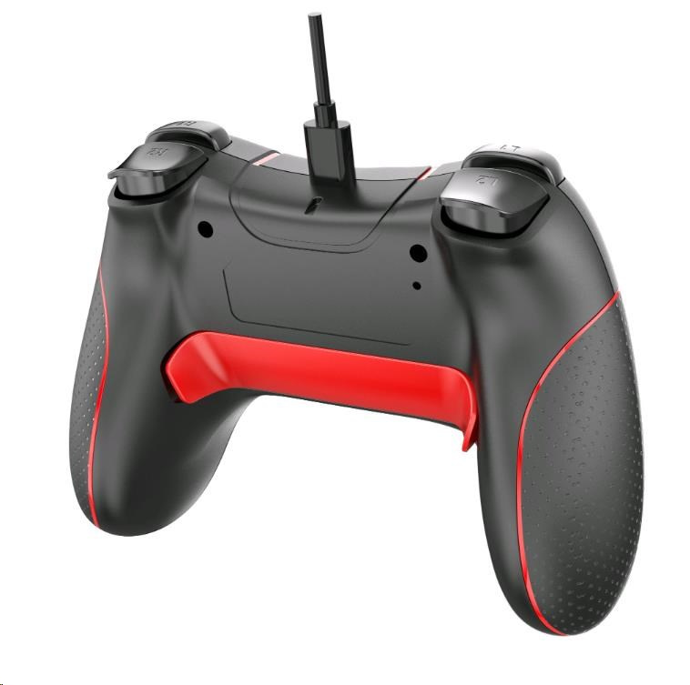 Gamepad C-TECH THEON Vám ponúkne ešte lepšie herné zážitky. 15 tlačidiel, dva analógové ovládače, smerový ovládač a 2 vibračné motory. Znie to ako štandard? Budete veľmi milo prekvapení. THEON má unikátny dizajn, vďaka ktorému ponúkne niečo, čo u konkurencie nenájdete: na spodku gamepadu ďalšie 2 programovateľné makro tlačidlá. Priamo z gamepadu im môžete pomocou funkcie makro priradiť sekvenciu stísknutia niekoľkých kláves. THEON má špeciálne povrchové úpravy a je výborne ergonómicky tvarovaný tak, aby hranie s ním bolo pre Vás naozaj radosťou. Môžete prepínať medzi digitálnym a analógovým režimom. Vďaka X-input máte istotu, že gamepad bude vo väčšine hier rozpoznaný a nebude potrebné ho nastavovať ani kalibrovať. Zaujímavým bonusom je aj podpora PS3.