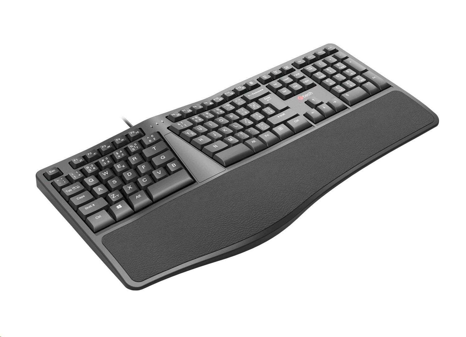 Ergonomická klávesnica C-TECH KB-113E bola navrhnutá pre tých, ktorí trávia veľa hodín prácou. Vďaka špeciálnemu dizajnu a mäkkej podložke vám táto klávesnica pomôže minimalizovať únavu počas dlhých pracovných hodín. Rovnako ako vertikálna myš pomáha predchádzať alebo zmierňovať účinky ochorenia karpálneho tunela.