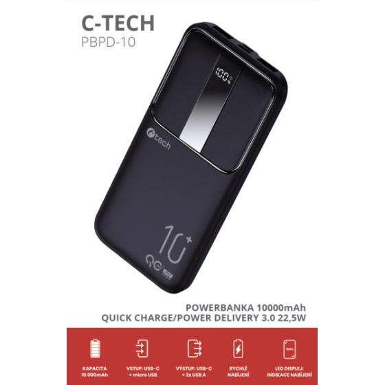 Predstavujeme vám novú powerbanku C-tech PBPD-10 s kapacitou 10000mAh, ktorá v sebe spája výkon, rýchlosť a elegantný dizajn. Táto powerbanka využíva pokročilé Li-pol články, čo zaisťuje spoľahlivý a dlhodobý zdroj energie pre vaše mobilné zariadenia.