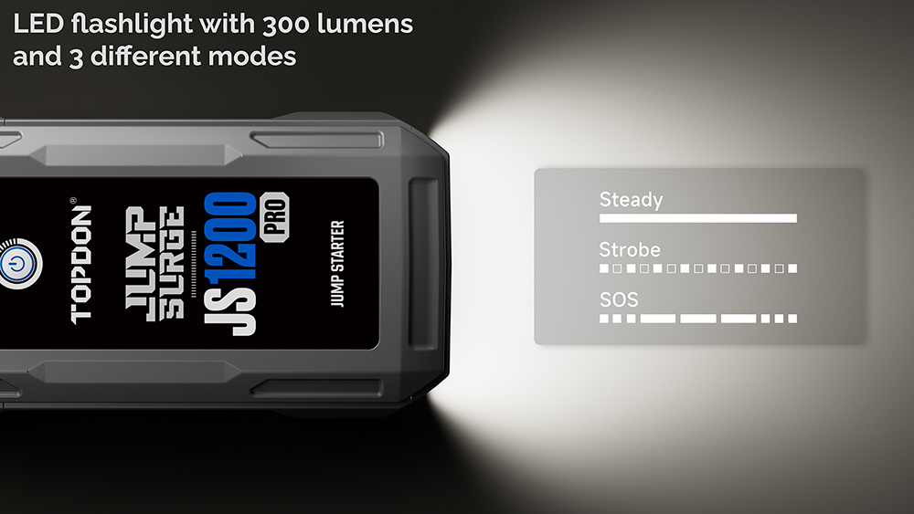 Maximálně spolehlivý a výkonný car jump startér JumpSurge 1200 PRO s kapacitou 3,7V, 10000mAh (37Wh) a špičkovým startovacím proudem až 1800A je ideální zařízení, které vám poslouží jako startovací zdroj pro vaše vozidla, lodě, motocykly, skútry. JumpSurge 1200 PRO vám umožní oživit baterii a nikdy nezůstat na cestách bez pomoci!