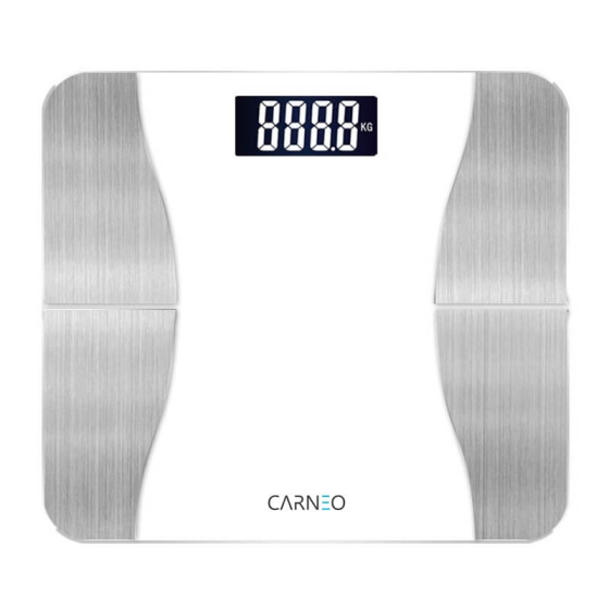 CARNEO FIT aplikace Prostřednictvím mobilní aplikace CARNEO FIT a připojením přes technologii Bluetooth bez nutnosti párování zařízení, tato inteligentní váha načte všechny naměřené údaje do mobilní aplikace ihned po zvážení a prostřednictvím přehledných grafů můžete sledovat statistickou trendovou křivku při každém jednom měřeném parametru. Všechny naměřené údaje zároveň můžete sdílet ze svými přáteli, který používají aplikaci CARNEO FIT nebo prostřednictvím sociálních sítí. CARNEO FIT APP APP APP Inteligentná váha CARNEO VITAL obsah balení OBSAH BALENÍ 1 * CARNEO Vital+ Bluetooth váha 1 * Napájecí kabel 1 * Manuál 1 * PVC metr na měření obvodu pasu