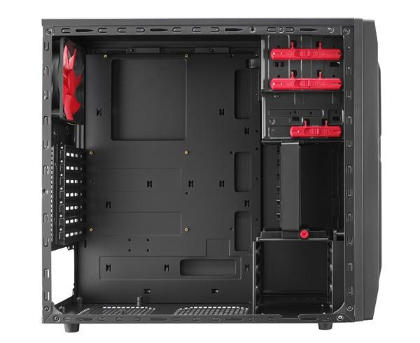 1x 120mm ventilátor (v spodnej časti), 1x 120mm ventilátor (vpredu), 1x 120mm ventilátor v držiaku VGA karty, 2x 120mm (ľavý bočný panel)