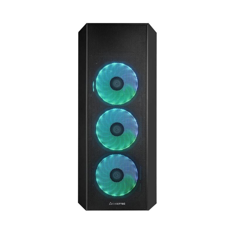 SCORPION 4 je ďalším pokračovaním veľmi úspešnej hernej série Scorpion od CHIEFTEC. Predný panel s plnou sieťovinou a štyri predinštalované dúhové ventilátory A-RGB zaisťujú, že aj tie najvýkonnejšie herné systémy sú chladené bez straty krásy štýlu RGB. Bočný panel z tvrdeného skla, ktorý sa otvára, poskytuje jasný výhľad na komponenty vo vnútri, zatiaľ čo ovládací rozbočovač A-RGB umožňuje ovládať osvetlenie pomocou M/B Sync alebo pomocou priloženého diaľkového ovládača. SCORPION 4, ktorý stavia na osvedčených základoch série Scorpion, poskytuje skvelú rovnováhu medzi výkonom, štýlom a funkčnou kvalitou prúdenia vzduchu.