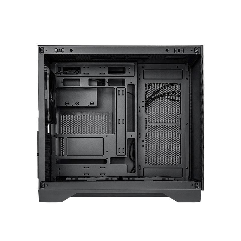 Výkonné puzdro CHIEFTEC Visio Air má dvojkomorové usporiadanie pre najnovšie základné dosky so spätným pripojením, ktoré zjednodušuje správu káblov a zaisťuje čistejší vnútorný priestor (kompatibilné s ASUS BTF a MSI Project Zero). Visio Air sa dodáva s tvrdeným sklom na bočnej stene, prednou časťou kombinujúcou brúsený hliník a sieťovaný panel, spolu s dvoma predinštalovanými 140 mm PWM ventilátormi na spodnej strane a jedným 140 mm PWM ventilátorom na zadnej strane. Táto konštrukcia zvyšuje stabilitu a prúdenie vzduchu, účinne znižuje akumuláciu tepla vo vnútri skrinky a zároveň udržuje nízku hladinu hluku.