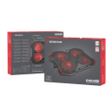 Chladicí podložka Genesis Oxid 260 je vybavena čtyřmi velkými ventilátory pro účinné chlazení. Jejich umístění zaručuje rovnoměrné chlazení notebooku a v závislosti na pracovním zatížení a teple, které zařízení generuje, můžete zvolit optimální rychlost ventilátorů.