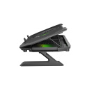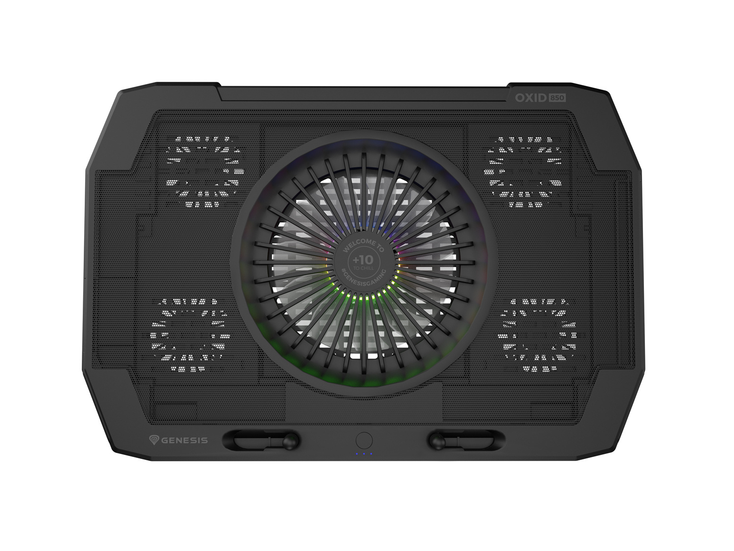 Genesis Oxid 260 je určen pro notebooky s úhlopříčkou obrazovky až 17,3 palce. Kovový panel s perforací na přední straně zajišťuje účinnou cirkulaci vzduchu, zatímco gumová podpěra základny zajišťuje váš mobilní počítač, zabraňuje jeho klouzání po povrchu podložky a chrání jej před náhodnými pády.