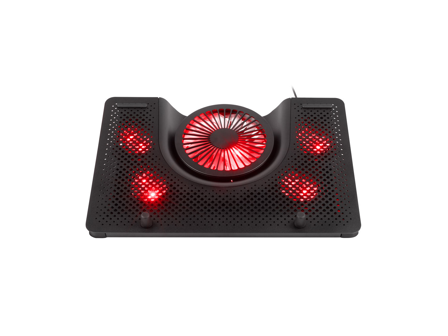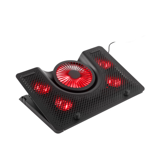 Chladicí systém podložky Oxid 550 je unikátní tím, že jeden velký ventilátor vhání studený vzduch do střední části notebooku a čtyři menší ventilátory umístěny na krajích odsávají teplý vzduch ven, což zajišťuje vynikající cirkulaci a vysokou efektivnost.