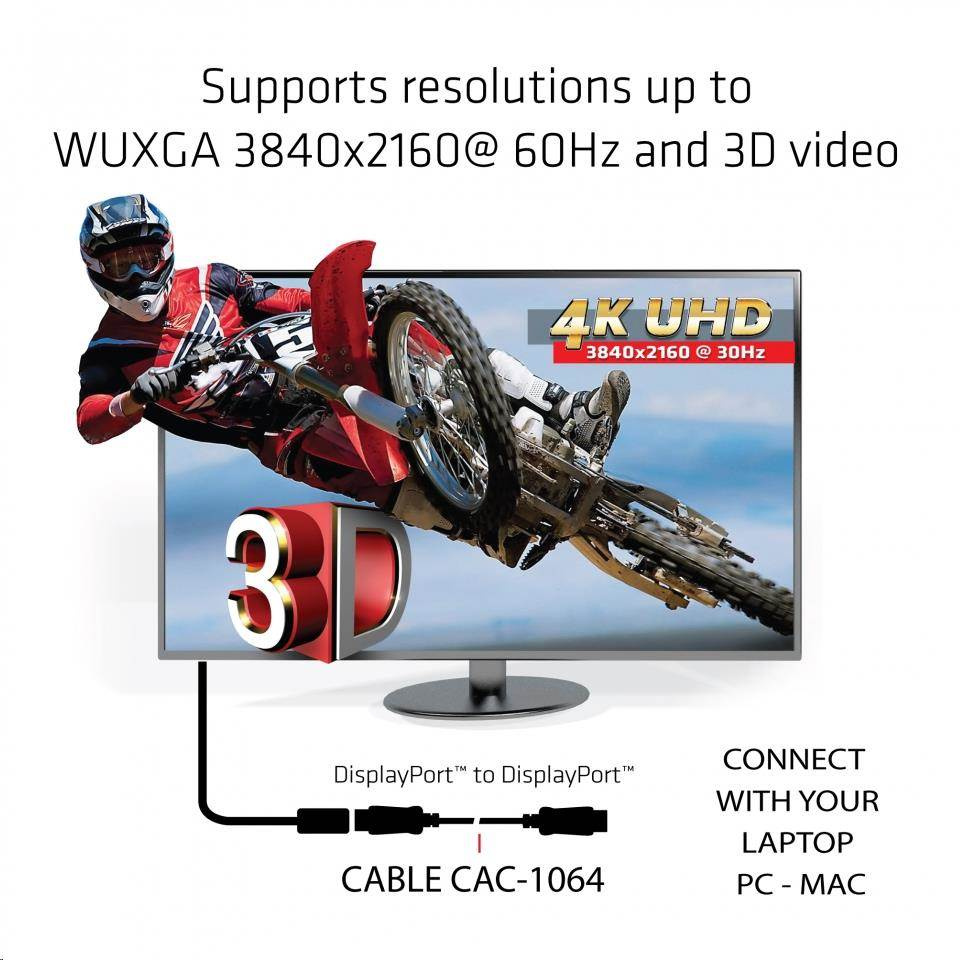 Kábel DisplayPort ™ Ver. 1.2 Vám umožní pripojiť herný PC alebo notebook s konektorom DisplayPort ™ k monitoru s vysokým rozlíšením (až UHD) nebo k inému zariadeniu s podporou DisplayPort ™. Obsahuje konektory vybavené zámkami, ktoré zaisťujú bezpečné a spoľahlivé pripojenie.