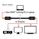 Kábel Club 3D HDMI ™ 4K60Hz UHD RedMere® umožňuje pripojenie vášho herného PC alebo notebooku, ktoré obsahujú port HDMI ™, k (U)HD monitoru alebo inému zariadeniu s rozhraním HDMI.