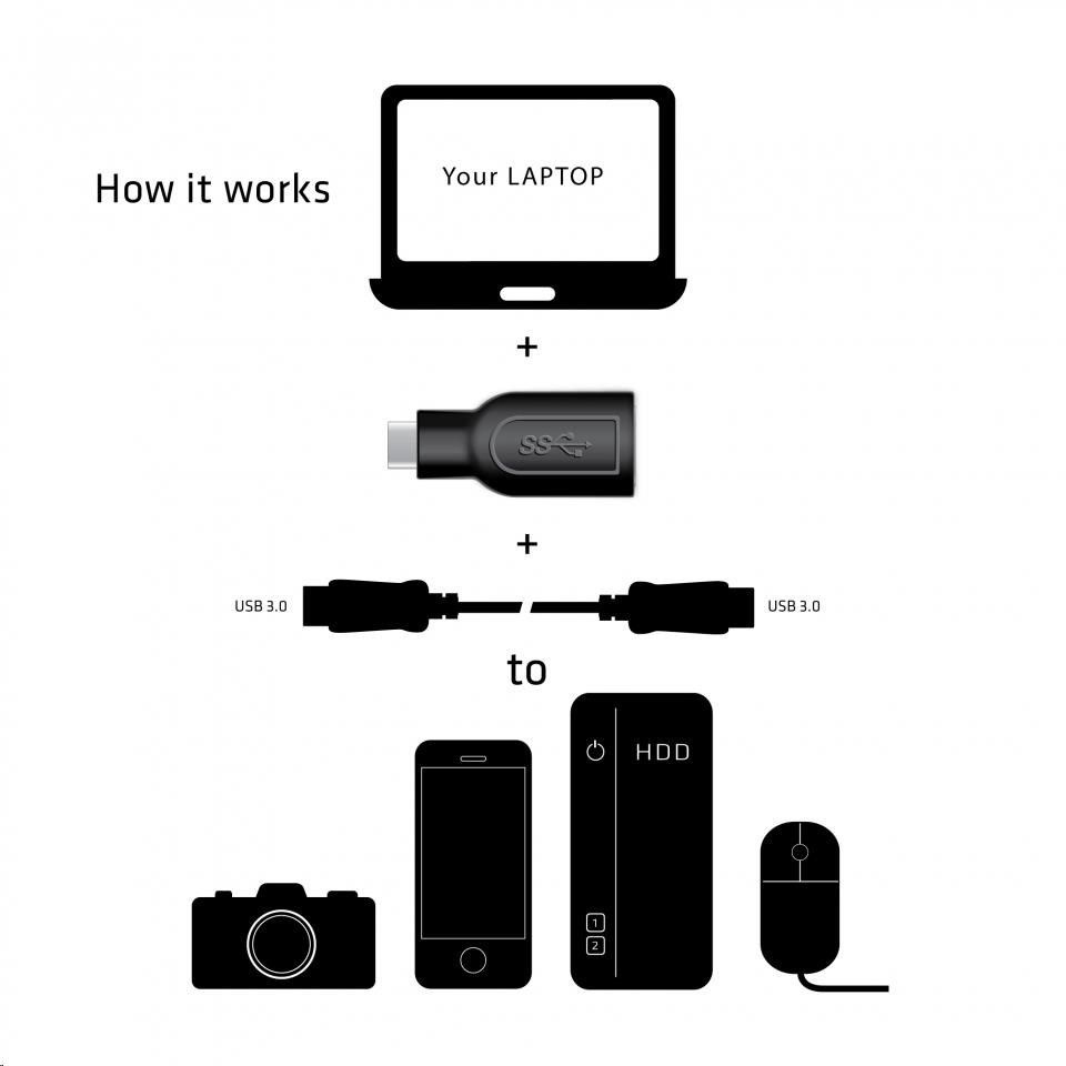 • Pripojte zariadenie typu USB typu A k notebookom, tabletom a ultrabookom s rozhraním USB 3.1 typu C.