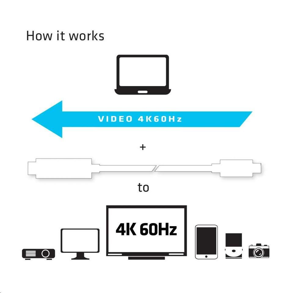 Popis Club3D Active USB typu C na HDMI 2.0 4K60Hz UHD, 1,8 m