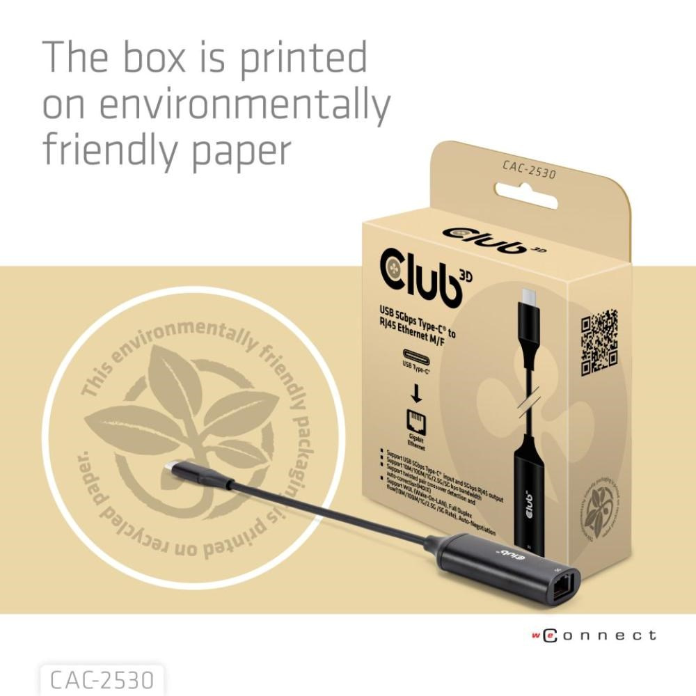 Club3D Adaptér USB-C na RJ45, 5Gb, 24cm