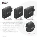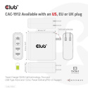 The Club 3D CAC-1912 Travel Charger 100W GaN technology, Four port USB Type-A(2x) and -C(2x), Power Delivery(PD) 3.0 Support is a high-performance and fashionable design travel charger. It is equipped with four USB connectors that are for output interfaces, this product allows four devices to be charged at the same time. And the two USB Type-A ports can convey 2.4A each to total 3.4A. The USB Type-C port is specially designed for notebooks with a USB Type-C Host connection for a total 18W (5V/3A,9V/2A) output. The top USB Type-C port is specially designed for the USB Type-C notebooks with total 65W-100W (5~15V/3A,20V/3.25A,20V/5A) output. The maximum power output for single USB Type-C port is 100W. It is suitable to charge mobile phones, tablets and laptops. The unique design makes your life simpler and easier.