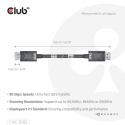Kábel Club 3D CAC-1092 DisplayPort™ 2.1 umožňuje pripojenie vášho (herný) počítača alebo notebooku s podporou DisplayPort™ k monitora (Ultra) s vysokým rozlíšením alebo inému zariadeniu s podporou DisplayPort™. DisplayPort™ 2.1 UHBR10/13.5/20 až 80 Gb/s, má tiež podporu pre Display Stream Compression 1.2 (DSC), Forward Error Correction a rozširuje maximálny počet vložených audio kanálov na 32. Má uzamykateľné konektory DisplayPort™ zabezpečujúce bezpečné, spoľahlivé spojenie, s NOVÝMI kontaktnými prstami špeciálne navrhnutými pre tieto vysoké rýchlosti. Jednoducho stlačte zabudované jednodotykové tlačidlo na odomknutie konektora. Mäkký obal UltraFlex chráni kábel pred ohýbaním a poškodením deformáciami.