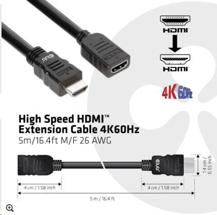 Popis Club3D Kabel prodlužovací Rychlý HDMI 4K60HZ (M/F), 5m, černá, 26 AWG