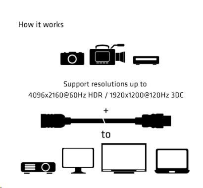 - Podporuje rozlíšenie až do 4096x2160@60Hz HDR / 1920x1200@120Hz 3D. *
