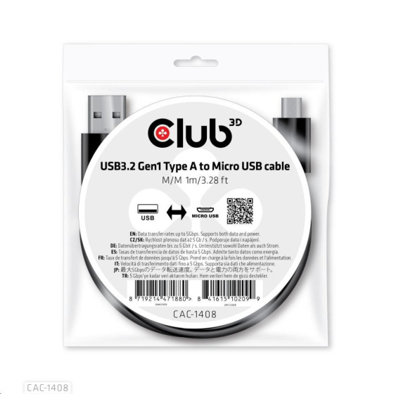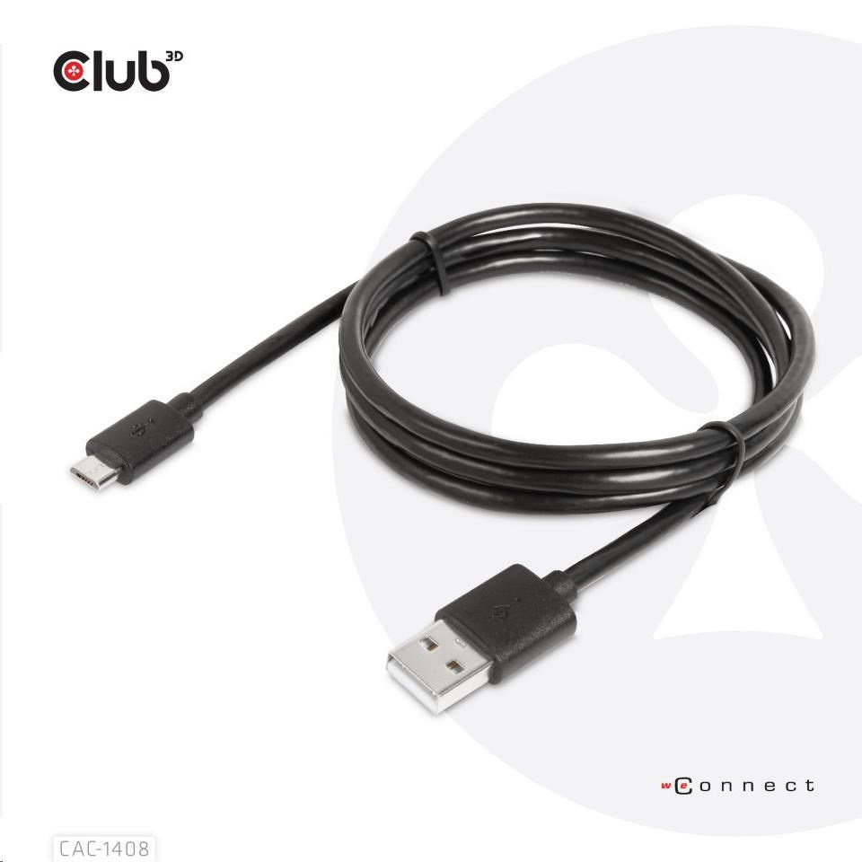 CAC-1408 - Klub 3D USB 3.kábel 2 Gen1 Type-A na Micro USB umožňuje pripojenie existujúcich výstupných pripojení USB typu A, notebookov, tabletov a ultrabookov, napájacích nabíjačiek atď. na vstupy Micro USB, ako sú fotoaparáty, telefóny a náš sortiment predlžovacích káblov a adaptérov.