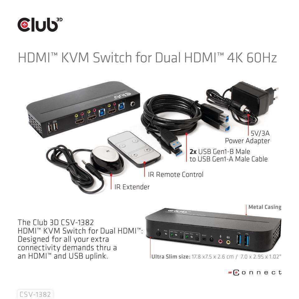 CSV-1382 je vysoko výkonný prepínač HDMI™ KVM (klávesnica, video a myš). Presúva videá s vysokým rozlíšením až do 4096 × 2160 pri 60 Hz rozlíšení a zvuk z akéhokoľvek zdroja HDMI™ na akýkoľvek displej s podporou HDMI™. Tento prepínač HDMI™ KVM má nielen funkciu prepínania stlačením tlačidla, ale aj inteligentnú funkciu a funkciu hot pluggable.