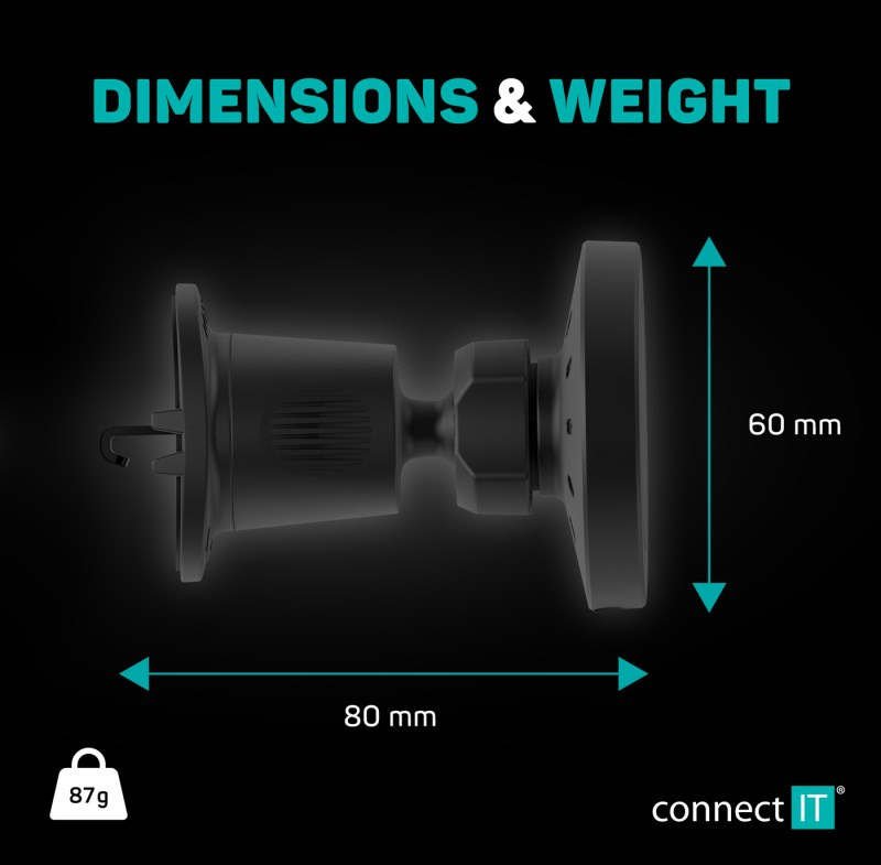 Popis CONNECT IT InCarz MagSafe univerzální magnetická bezdrátová nabíječka do auta, černá