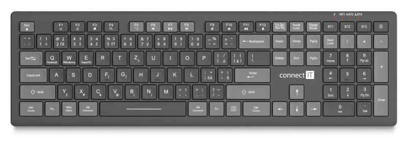 Nízko profilová tichá klávesnica so štyrmi bezdrôtovými profilmi podporujúcimi štandardy BT 5.0, 3.0 a Wirelless 2,4 GHz je ideálna na domáce použitie aj pre vysoko záťažové profesionálne využitie v kanceláriách a firmách.
