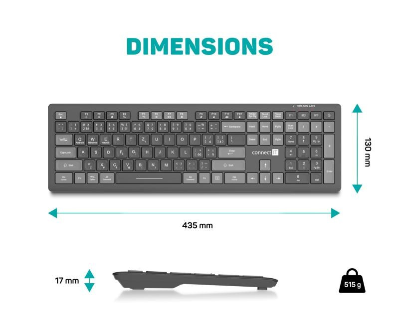 Klávesnica okrem klasických funkcií disponuje zabudovanou 350 mAh batériou s výdržou až 100 hodín a 13 multimediálnymi klávesami, ktoré sa obzvlášť hodia do kancelárskeho prostredia. Unikátna technológia Quatro SmartSwitch umožňuje používať klávesnicu až na štyroch zariadeniach, ktoré podporujú BT 5.0 alebo disponujú USB-A vstupom. Táto funkcia je ideálna pre profesionálne aj domáce použitie všade tam, kde je potrebné pracovať s jednou klávesnicou striedavo na viacerých počítačoch alebo notebookoch. Príjemný sklon klávesnice pomáha proti únave zápästia počas dlhých pracovných relácií. Samozrejmosťou je integrovaný úložný priestor pre USB Nano prijímač.