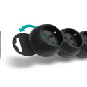 Predlžovací kábel 230 V je vybavený detskou ochranou pre všetky zásuvky - zásuvky sú prístupné len vtedy, ak sú obe vidlice zasunuté súčasne, takže ich nie je možné zasunúť jednotlivo, napr. iba skrutkovač alebo pletacie ihlice. Vďaka otočeniu zásuviek o 45° je možné používať aj objemnejšie napájacie adaptéry alebo uhlové zástrčky. Výsuvná slučka v hornej časti zásuvkového modulu umožňuje zavesenie alebo pevnú inštaláciu na stenu (napr. v dielňach a garážach). Výrobok bol testovaný a certifikovaný európskym skúšobným centrom, spĺňa najprísnejšie bezpečnostné požiadavky a najnovšie normy a umožňuje pripojenie spotrebičov s celkovou spotrebou energie až do 2500 W.