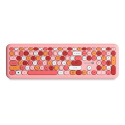 Bezdrôtová klávesnica a optická myš s klávesami v červeno-ružových odtieňoch je ideálna kombinácia počítačového príslušenstva, ktoré si môžete vziať so sebou domov či do práce.