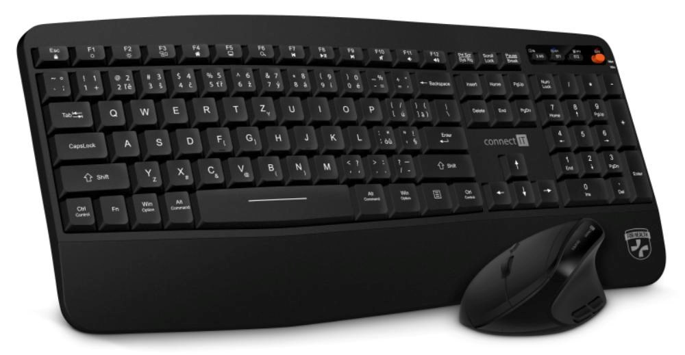 Ergonomická súprava klávesnice a myši určená špeciálne ako prevencia proti syndrómu karpálneho tunela. Ponúka možnosť pripojenia až na tri zariadenia vďaka technológii TriMode (2x BT 5.1 + 2.4 GHz wireless). Vhodná pre domáce použitie aj pre vysoko záťažové profesionálne použitie v kanceláriách a firmách. CZ+SK lokalizácia (české a slovenské znaky).