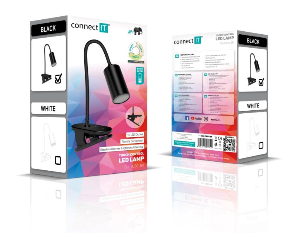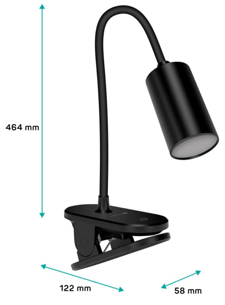Díky flexibilnímu rameni nastavíte dokonalý úhel pro jakoukoliv práci. Lampička disponuje praktickým dotykovým spínačem, který umožňuje zapnout/vypnout lampu, plynule nastavit úroveň jasu světla nebo nastavit barevnou teplotu světla ve 3 různých úrovních (3000/4500/6500 K). Pomocí klipu můžete lampičku umístit nejen na Váš pracovní stůl, ale například na poličku, noční stolek či rám postele.