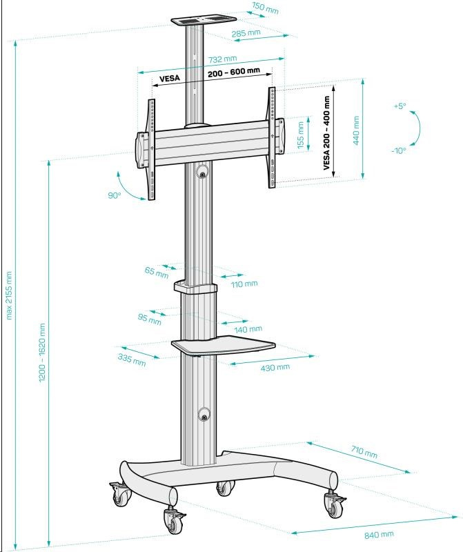 CONNECT IT Wheelie II mobilný stojan a držiak na jednu obrazovku 37" - 70", 30 rokov záruka, STRIEBORNÝ