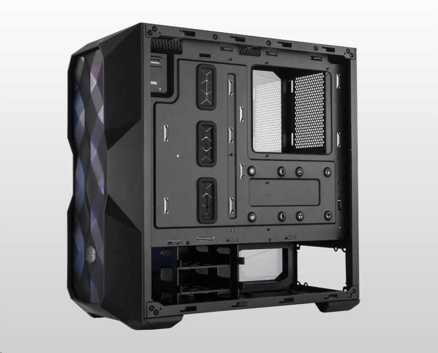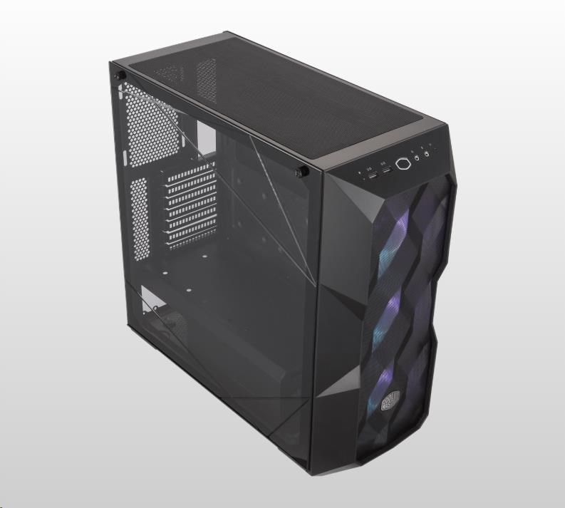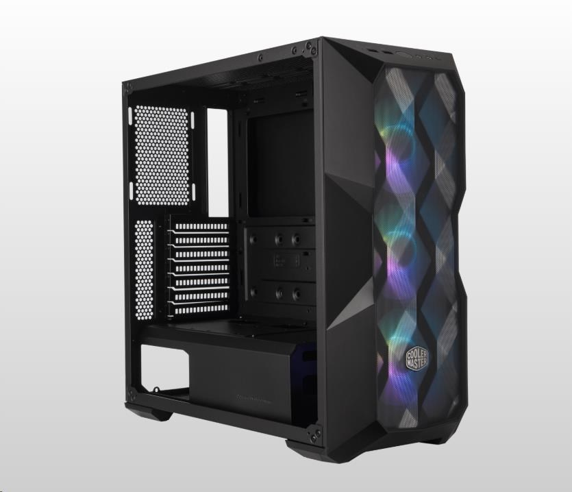 Design skrine E-ATX MasterBox TD500 Mesh dodáva počítaču nový rozmer vďaka obrysom a tvarom, a poskytuje tak systémom na zákazku prezentáciu, ktorá presahuje ploché dvojrozmerné panely. Bočný panel z kryštalického tvrdeného skla sa vyznačuje dizajnom, ktorý spolupracuje s osvetlením komponentov, a je precízne skonštruovaný ako pre svoju odolnosť, tak aj pre svoju estetiku prostredníctvom CNC obrábania.