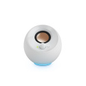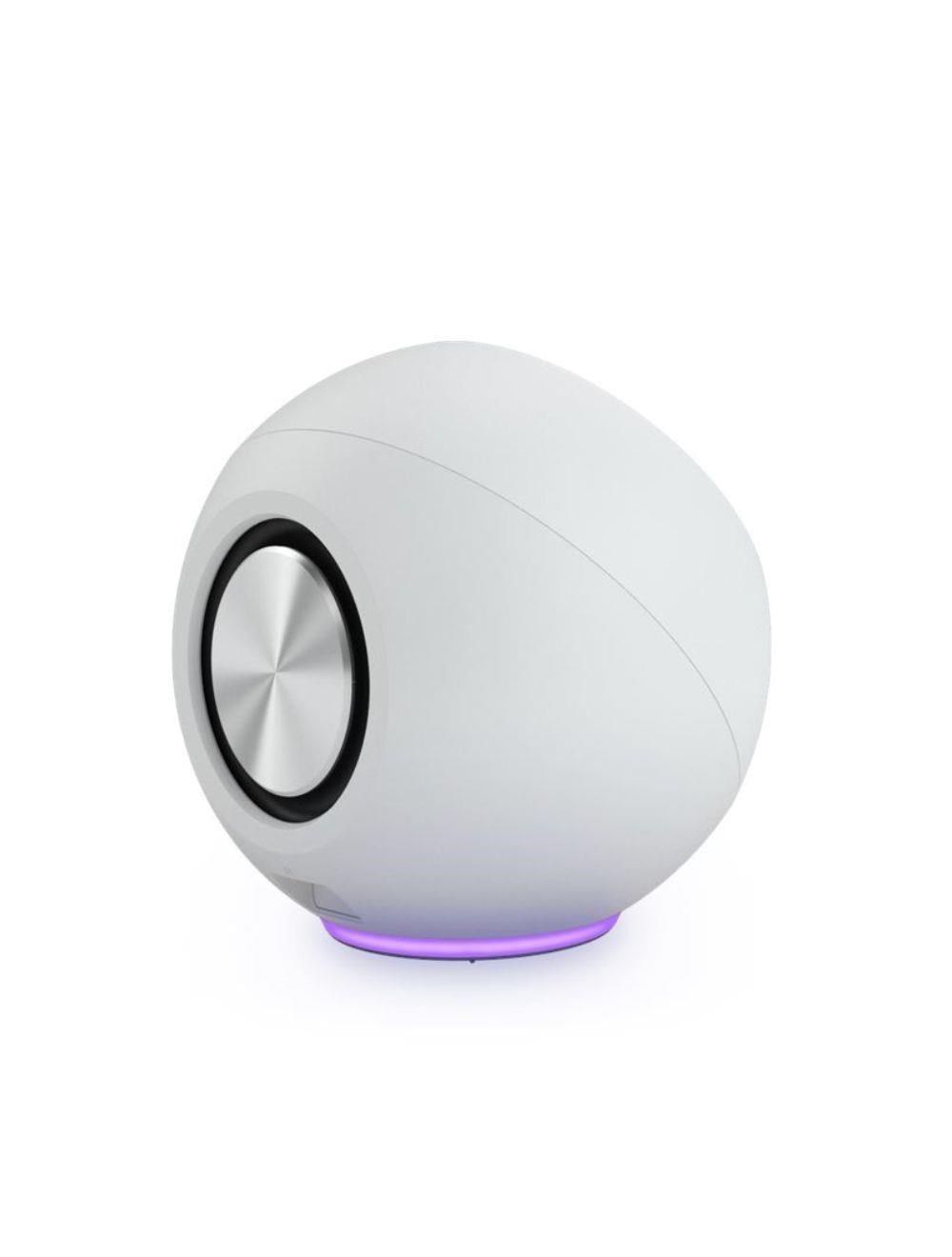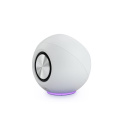 Tento guľovitý reproduktor je dostupný v čiernej alebo bielej farbe a dokonale ozvláštni akýkoľvek systém.