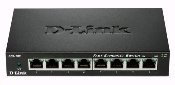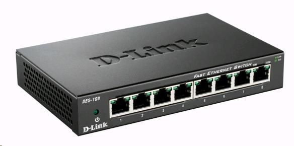 Popis D-Link DES-108 8-portový 10/100 stolný prepínač s kovovým puzdrom