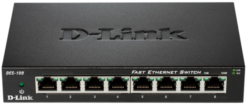 Popis D-Link DES-108 kovový 8-port 10/100 Desktop Switch