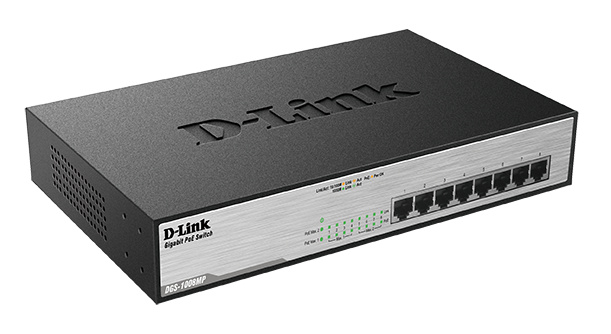 Zařízení DGS-1008MP je vybaveno 8 porty 10/100/1000BASE-T, které podporují protokol IEEE 802.3at PoE+. Každý z 8 portů PoE+ může dodávat až 30 wattů s celkovým výkonovým rozpočtem PoE 140 wattů. Technologie PoE je vhodná zejména pro zařízení, která jsou vzdálená od elektrických zásuvek, nebo když chcete minimalizovat nepořádek v podobě dalších kabelů.