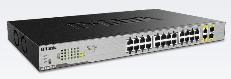 D-Link DGS-1026MP 26-portový gigabitový PoE switch, 24x gigabitový RJ45 PoE, 2x gigabitový RJ45/SFP, rozpočet PoE 370W