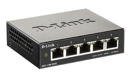 Popis D-Link DGS-1100-05V2 5-portový gigabitový inteligentný riadený prepínač, bez ventilátora
