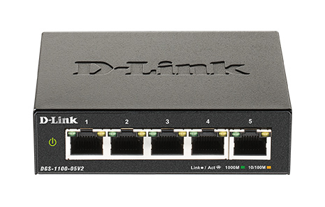 D-Link DGS-1100-05V2 je 5-portový Gigabit Smart řízený přepínač v kompaktním kovovém provedení bez ventilátorů, pro položení na stůl, na poličku nebo montáž na zeď. Nabízí základní sadu L2 funkcí (např. VLAN, QoS, IGMP Snooping, agregace linek) s možností správy z webového rozhraní, pomocí SNMP příkazů nebo nástroje D-Link Network Assistant (DNA). Switch je určený především pro kanceláře (SOHO) a malé a střední podniky (SMB).