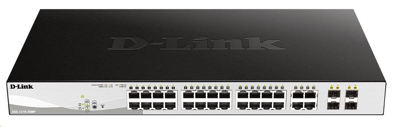 D-Link DGS-1210-28MP 28-portový gigabitový Smart+ PoE switch, 24x GbE PoE+, 4x RJ45/SFP, PoE 370W