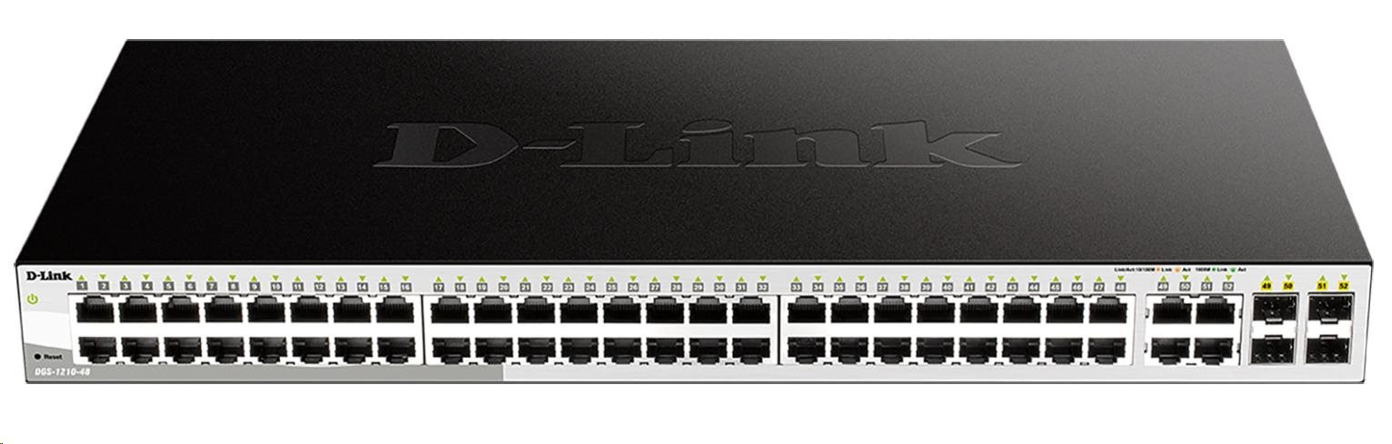 D-Link DGS-1210-48 52-portový gigabitový inteligentný prepínač, 48x GbE, 4x RJ45/SFP, bez ventilátora
