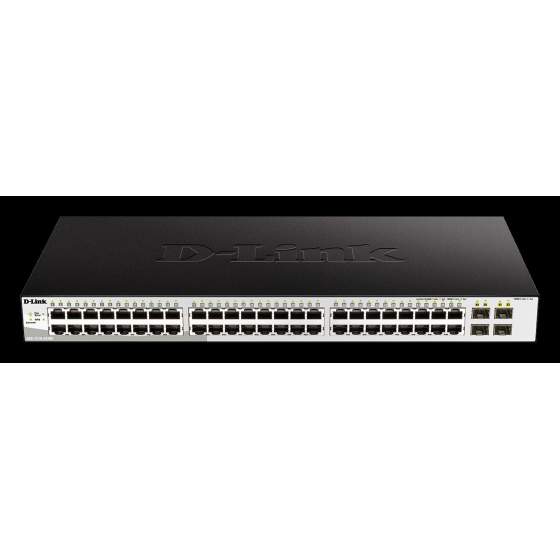 "48-Port 10/100/1000BASE-T + 4-Port 1 Gbps SFP Ports Metro Ethernet Switch - 48 x 10/100/1000BASE-T ports - 4 x 1 Gbps SFP ports - Switching Capacity 104 Gbps - Layer 3 Features: H/W Ver. B1 IPv4/IPv6 Interface (Max. 4 IPv4/IPv6 Interfaces), Static Route, Max. 128 ARP Entries, Supports 255 static ARP entries - Layer 2 Features: Supports IEEE 802.3ad Link Aggregation (Supports max. 8 groups, 8 ports per group), Port-based Q-in-Q, Lookback detection, Spanning Tree Protocols: 802.1D STP, 802.1w RSTP, 802.1s MSTP, 16K MAC address table and Jumbo Frame up to 9,216 Bytes - Quality of Service (QoS) – Bandwidth Control, Queue handling, 8 outbound queues - Management: Web-based GUI (IPv4/IPv6), Full Command Line Interface (CLI) through Telnet, SSH and the console port, D-Link Network Assistant Utility (DNA) - Access Control Lists (ACLs) Security: SSH, Port security (up to 64 MAC addresses per port), IP-MAC-Port Binding (IMBP), Broadcast/Multicast/Unicast storm control, IP Inspection, (IP source Guard), Duplicate Address Detection (DAD), D-Link Safeguard Engine, BPDU/DoS attack prevention, Traffic segmentation - VLAN: Asymmetric VLAN, Voice VLAN, GVRP, Private VLAN, ISM VLAN (multicast VLAN), VLAN trunking - Access Control, Authentication for management access (local/RADIUS/TACACS+) - MTBF 381,999 hours - Acoustic: High Speed: 49 dB(A), Low Speed: 40 dB(A) - Ventilation: 1 x Smart fan - Weight 3.31 kg - 19-inch standard rack-mount width. 1U height. Dimension 440x210x44mm - Surge protection".