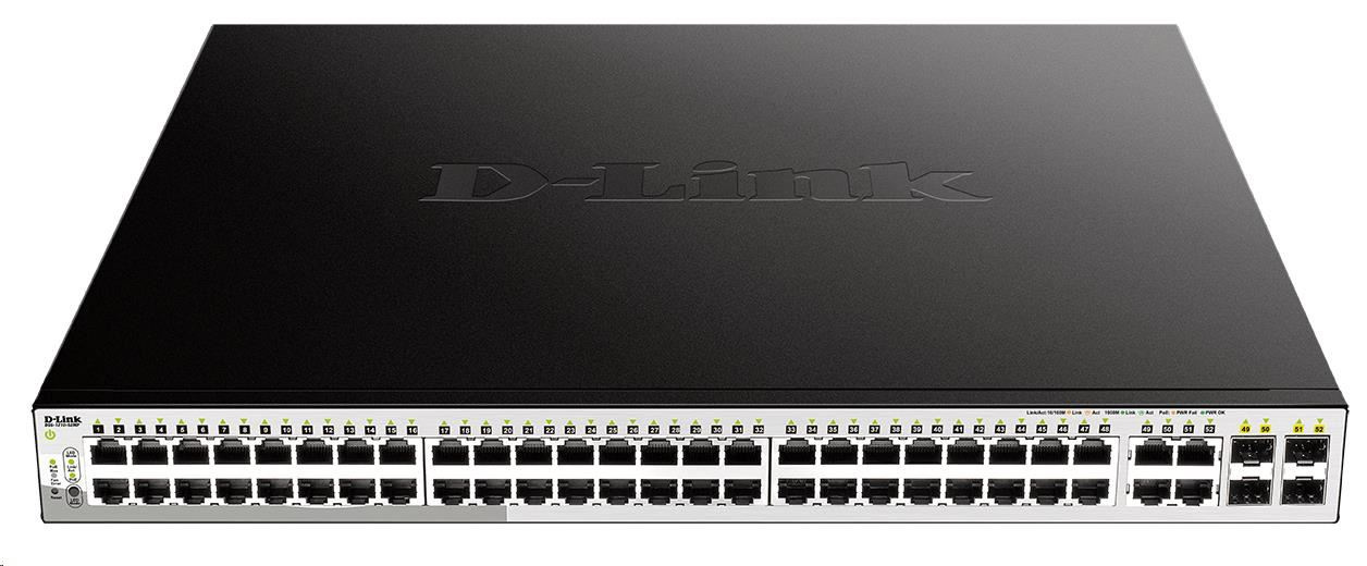 D-Link DGS-1210-52MP 52-portový gigabitový Smart+ PoE switch, 48x GbE PoE+, 4x RJ45/SFP, PoE 370W