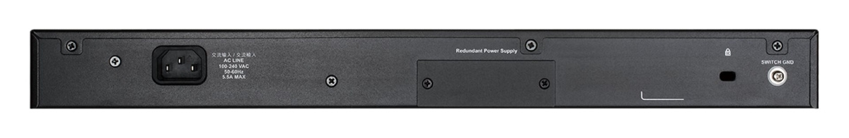 - Celkový PoE výkon přepínače 370W, lze zvýšit na 740W pomocí externího redundantního napájecího zdroje DPS-700